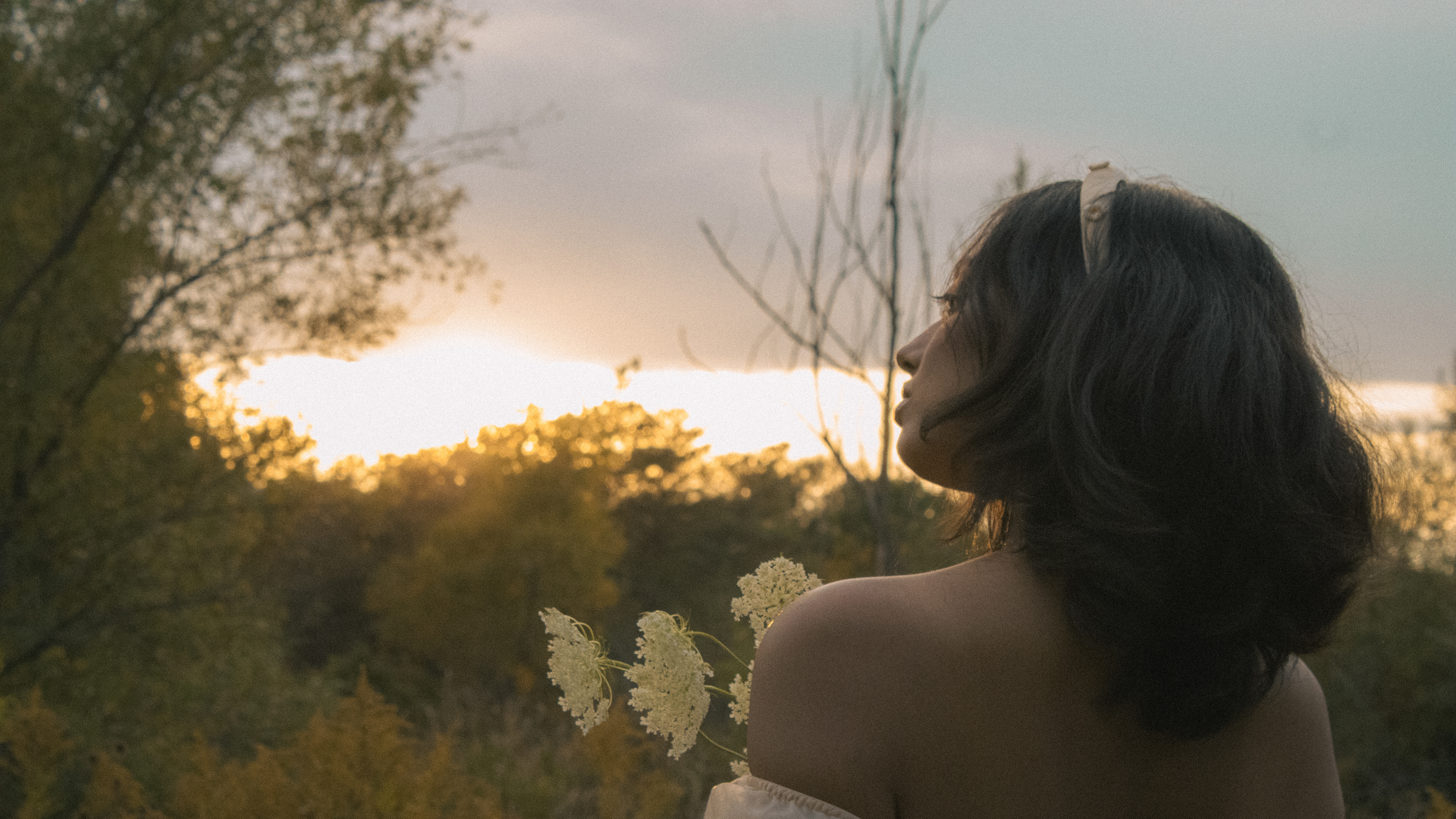 A Photo Collection with the "Lost Fairy in the Forest" concept. The photos capture the subject lost in nature and exploring. Capturing a soft and golden aesthetic, the photos further enhance the story of the collection.